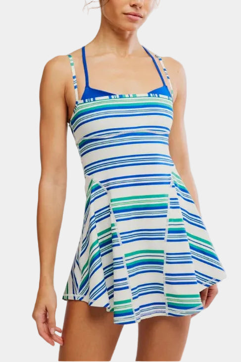 FP Movement Baseline Printed Tennis Dress in Electric Shock Stripe