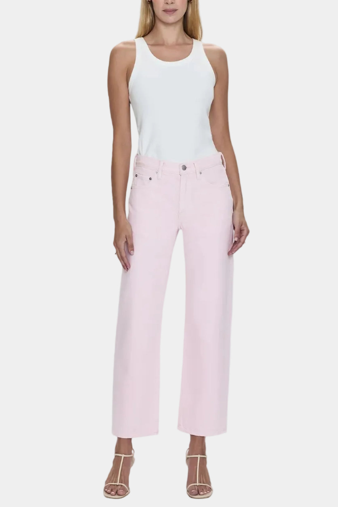 Pistola Lexi Mid Rise Bowed Straight Jeans in Blush