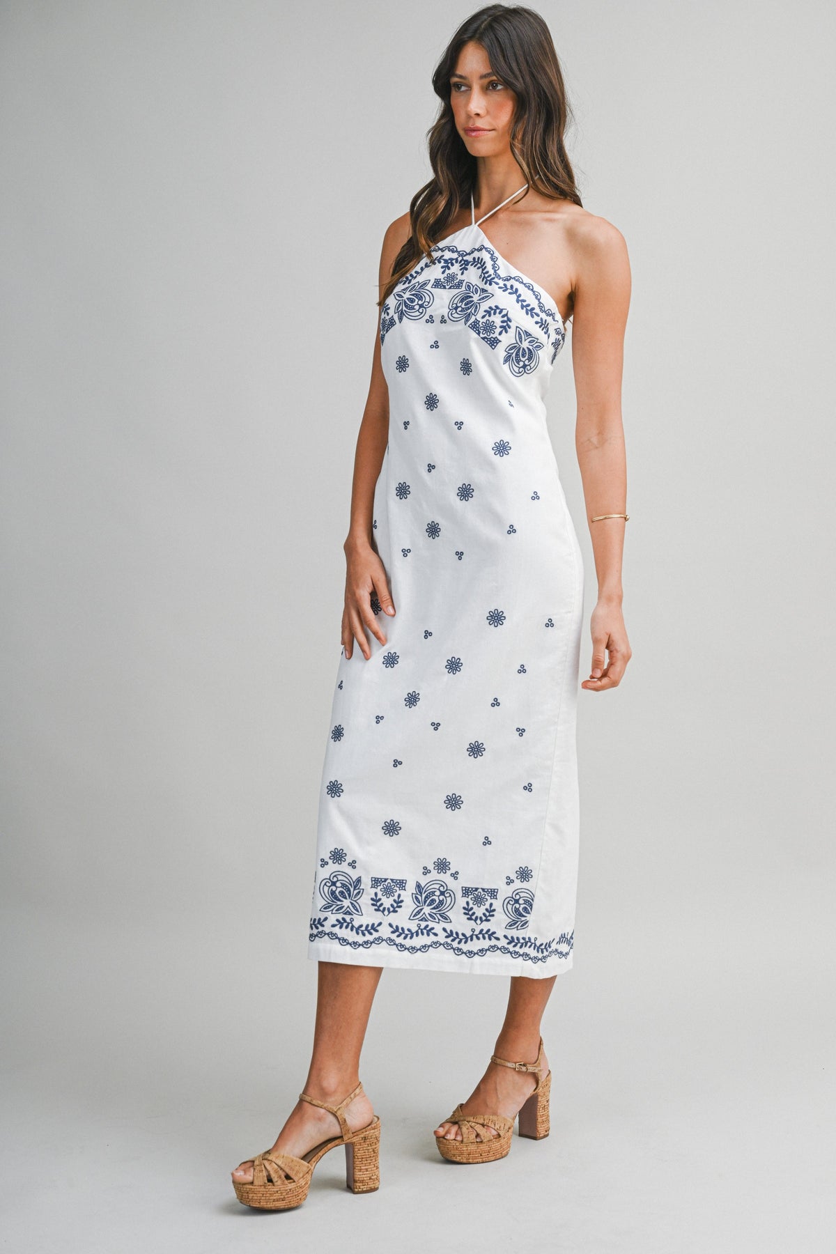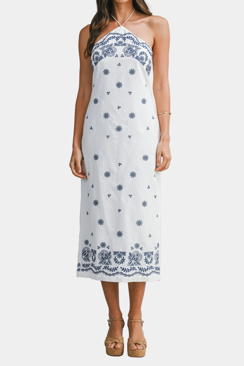 Karla Embroidered Cotton Halter Neck Midi Dress