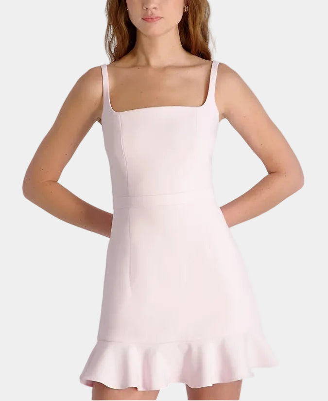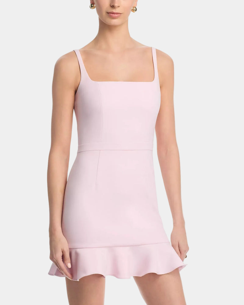 French Connection Whisper Square Neck Frill Hem Mini Dress in Pink Icing