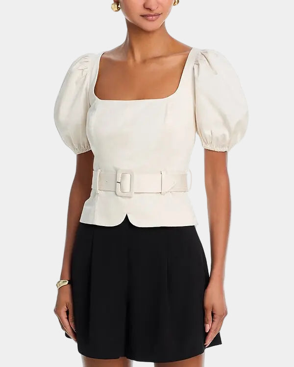 French Connection Sateen Weave Puff Sleeve Top