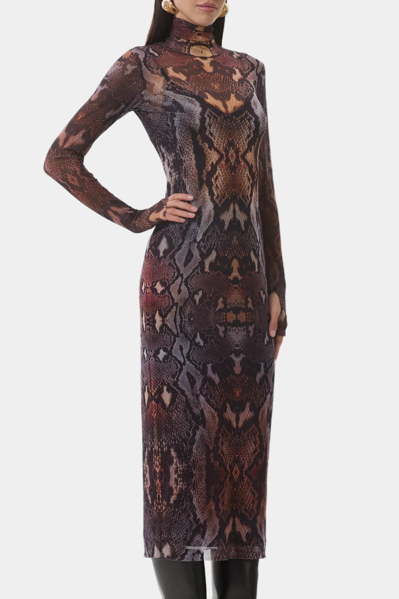 AFRM Shailene Midi Dress in Placed Umber Snake