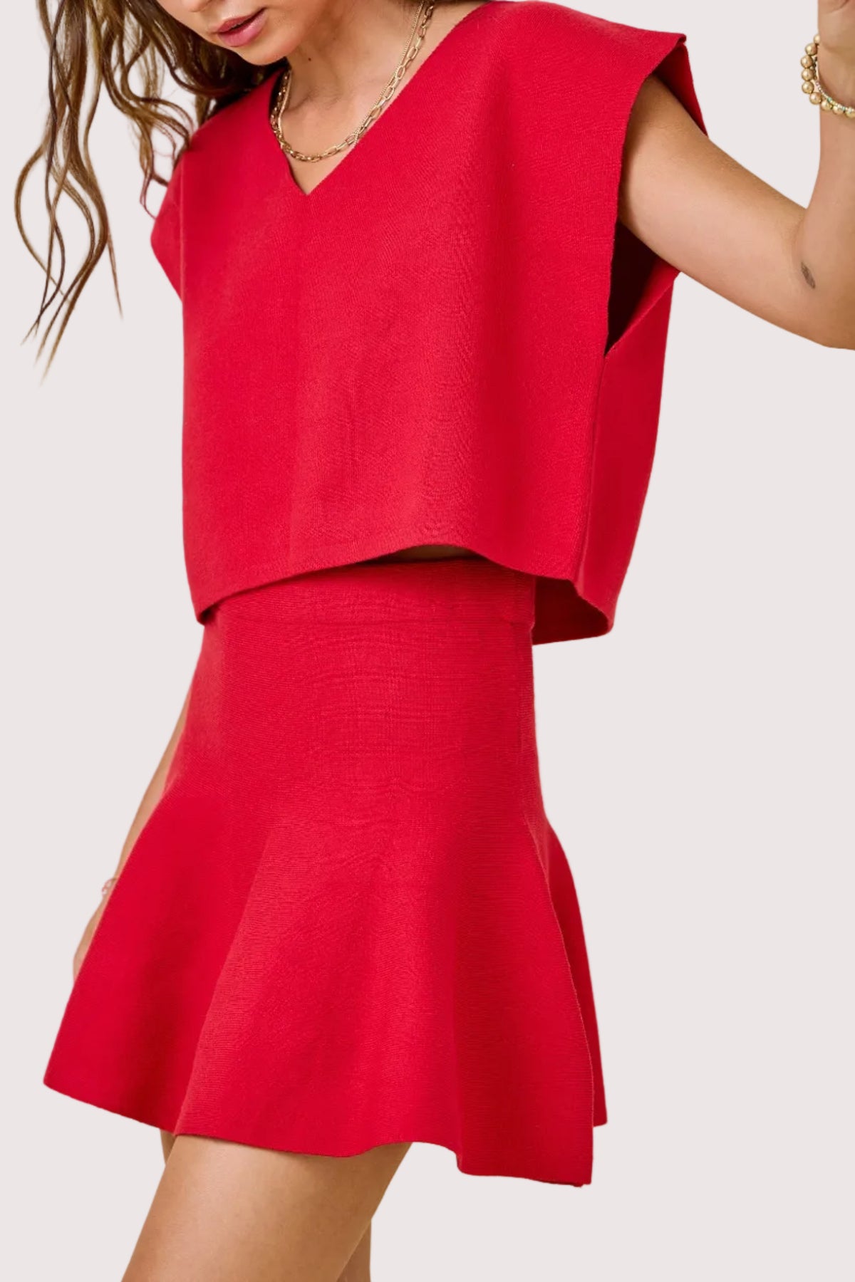 Ana Sleeveless V-neck Sweater Top and Flared Mini Skirt Set